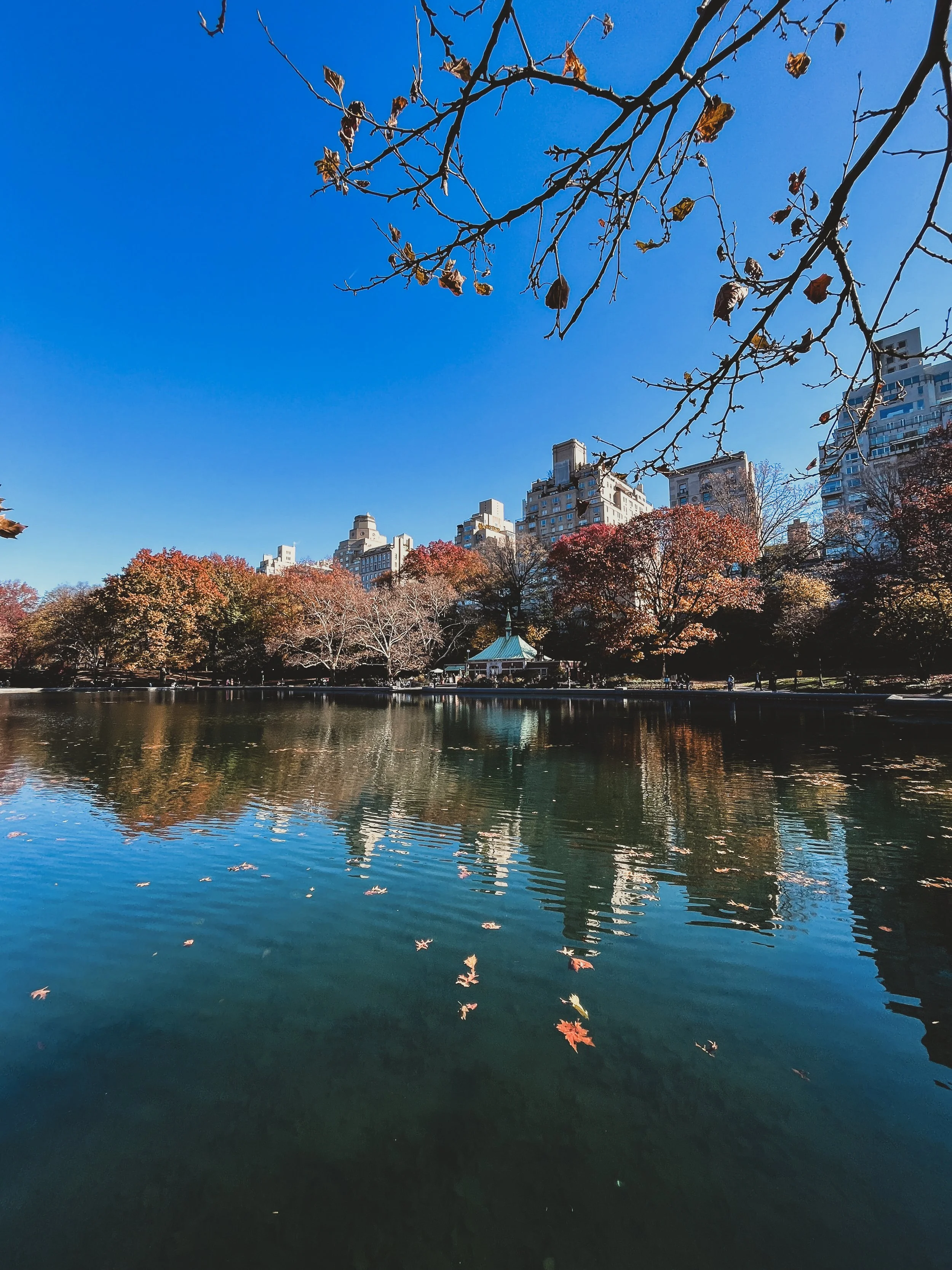 Pictured Below: The Pond at Central Park, View from behind Wollman Rink in Central Park, Central Park Row Boat under Bow Bridge, Central Park Row Boat with El Dorado in the background, Jackie Kennedy Onassis Reservoir, benches along Cherry Hill during Cherry Blossom season